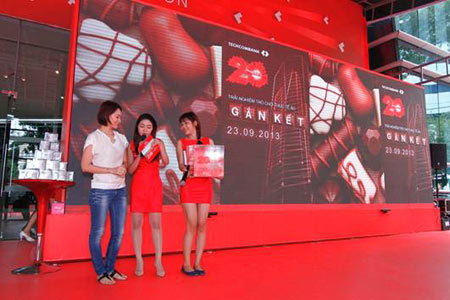 Vào các ngày thứ Sáu (13/9, 27/09, 11/10, 25/10, 8/11, 22/11/2013), khi mở mới sổ tiện tặn Phát Lộc hay mở mới gói trương mục tại quầy giao tiếp của ngân hàng, khách hàng được tặng hàng gia dụng chất lượng thương hiệu Happycook, Minh Long. Vị khách may mắn đã trúng thưởng trong 5 ngày vàng khuyến mãi nhân dịp khai trương hội sở Techcombank miền Nam tại Lim Tower Ngày 27/09/2013, nhân khai trương chính thức hội sở Techcombank Miền Nam tại Lim Tower, Techcombank triển khai nhất tề chương trình tặng nón bảo hiểm trẻ thơ Protect trên toàn quốc.